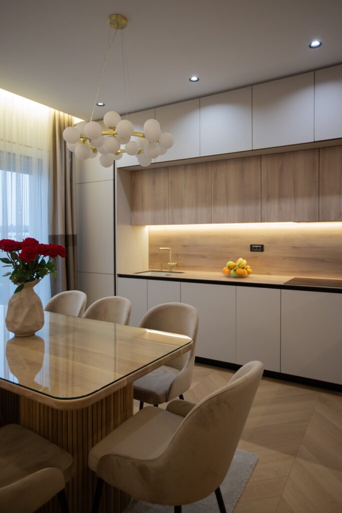 Ukoliko volite jednostavne, ali istovremeno dinamične i karakterne enterijere, ovaj porodični stan pruža savršen balans između funkcionalnosti i estetike. Topli tonovi, prirodni materijali i suptilne teksturalne razlike čine prostor prijatnim za svakodnevni život, dok pažljivo odabrani detalji unose dozu karaktera i savremenosti.